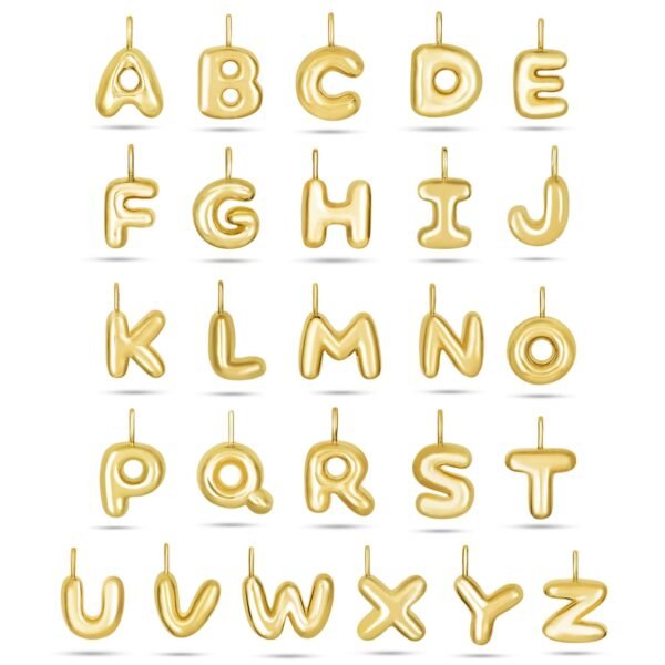 925 Sterling Silver 18K Gold-Plated/Silver-Plated A-Z Initial Charm Letter Jewelry 26 Letters Fluffy Bubble Letter Initial Pendant GE25-05-51