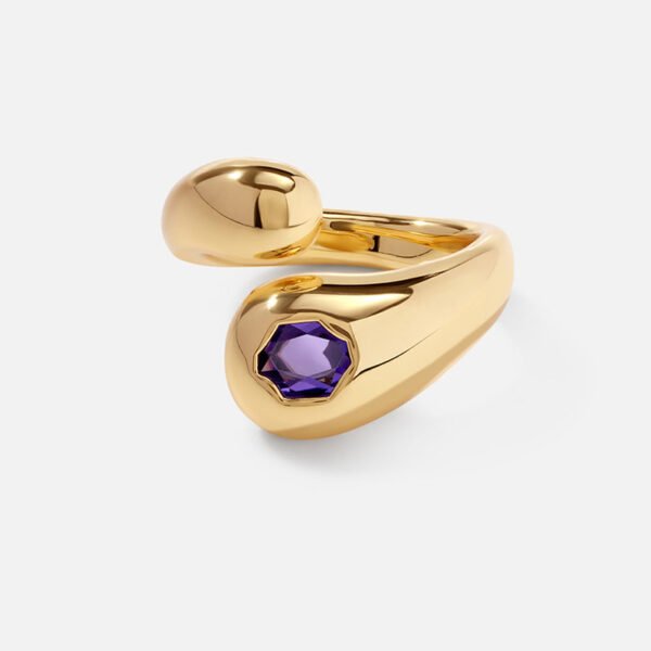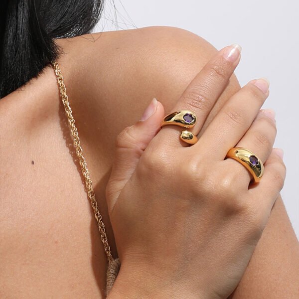 Milskye Thick Jewelry 925 Sterling Silver 18K Gold-Plated Open Top Curved Zircon Gemstone Women’s Ring GE25-05-21