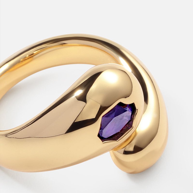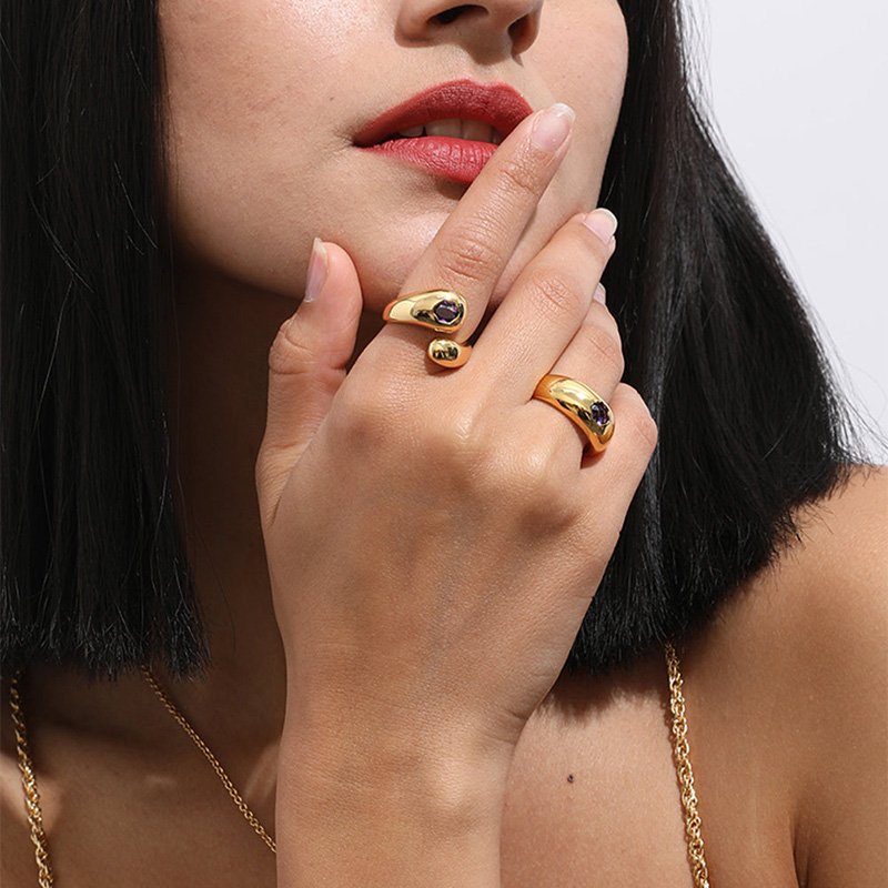 Milskye Thick Jewelry 925 Sterling Silver 18K Gold-Plated Open Top Curved Zircon Gemstone Women’s Ring GE25-05-21